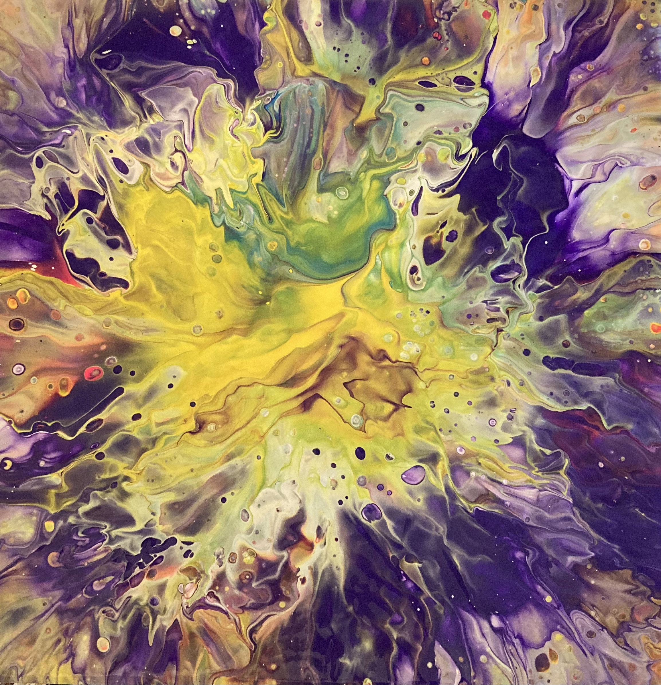 “Star in Bloom” derives from Liam Wilson’s collection of 77 pour paintings of acrylic on canvas and wood. One of these paintings provides the cover art for “the after: poems only a planet could love”, which is published by Poets’ Choice and will be released in the spring of 2022. Other pieces from this collection are forthcoming in “Beyond Words” an on line literary magazine. His works can be viewed on Instagram at @bouringpaintings. Liam is currently a student in Media Studies at the University of Colorado, Boulder.
