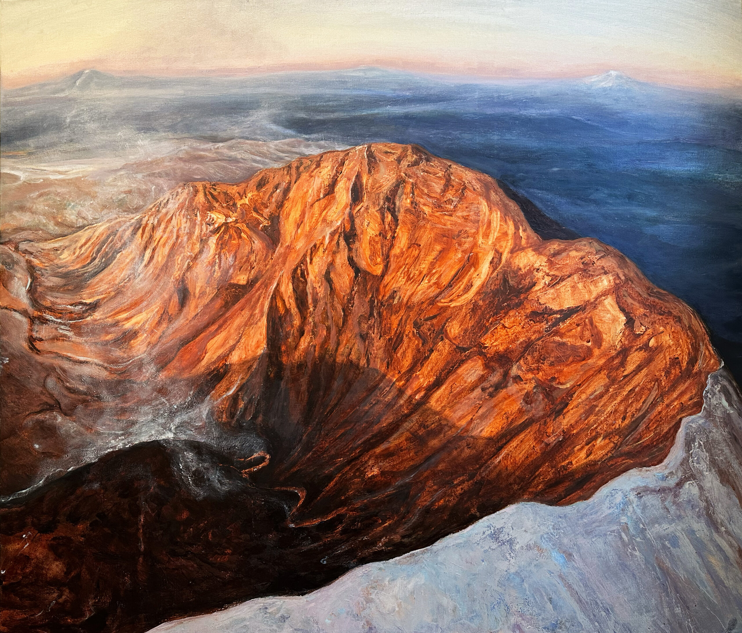 the smoldering crater, remnants of a past epoch