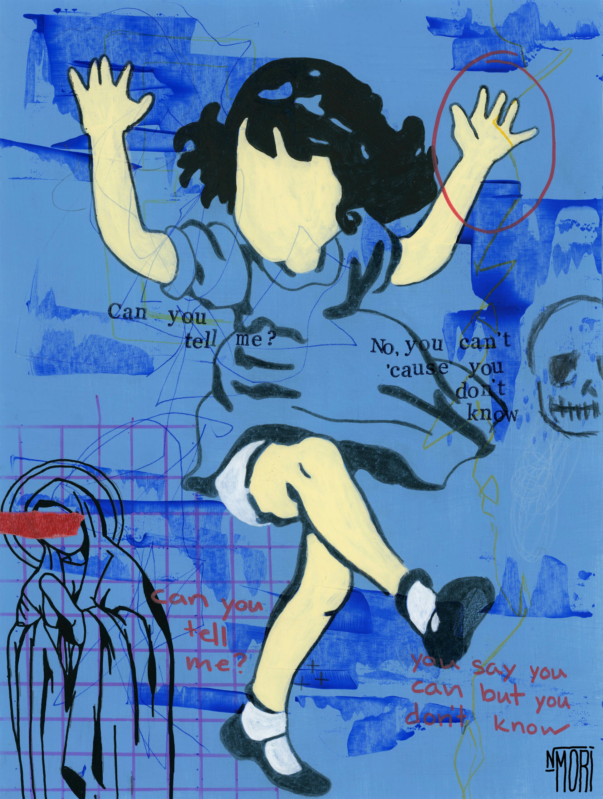 N_Mori is an emerging artist who uses mixed media to create captivating artwork. After an extended hiatus, they rekindled their artistic journey with a passion. Their creations reflect the ebbs and flows of emotions and the state of their mental health, transforming inner struggles into intriguing visuals.