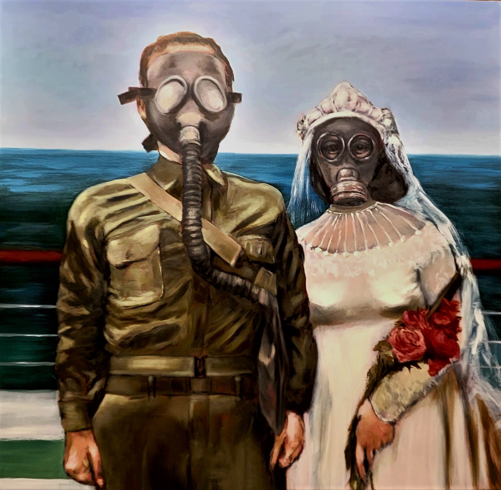 In this series Philip Palmieri is pairing brides to battle scenes, hoping to explore the nature of relationships in today’s world where war has broken out again in Europe, a respiratory virus wreaked havoc over the past three years and politics threatens to drive wedges between all of us. Through his oil paintings, Palmieri strives to expose what is hidden in clear sight. With lush color and thick texture, he compares, contrasts and confuses lovely with loathsome. His primary focus has been on the figure and portraiture. He has moved away from the traditional idealized portrait to ones that can be gritty, alarming or even playful. Palmieri paints to speak to his time.